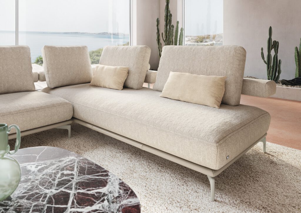 Mit einem klaren Fokus auf horizontale Linien und weitläufige Räume entfaltet Rolf Benz TAYA eine visuelle Atmosphäre, die einen nahtlosen Übergang zwischen Innen- und Außenwelt inszeniert. Svend Loevbjerg und Henrik Pedersen von der dänischen Design-Agentur Norsmind verfolgen in ihrer Design-Idee den Ansatz, den Wohnbereich konsequent nach außen zu verlängern –mit unvergleichbarem Sitzkomfort.