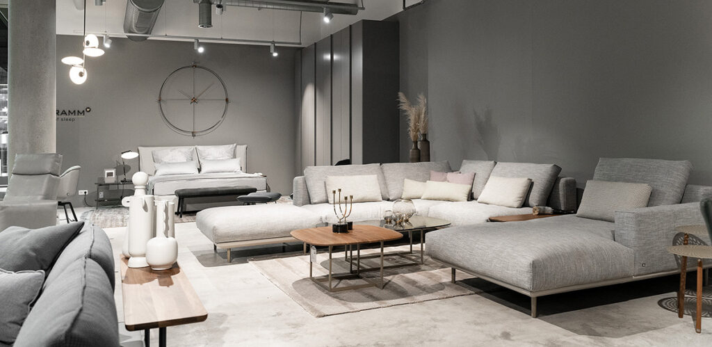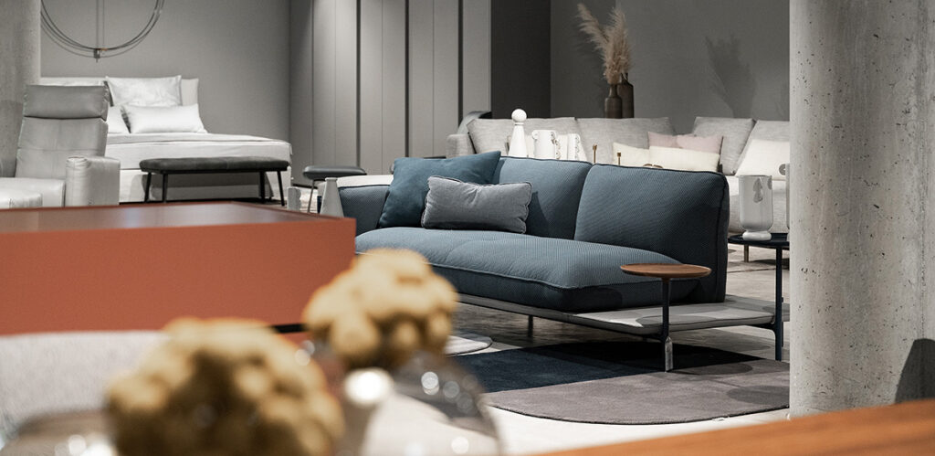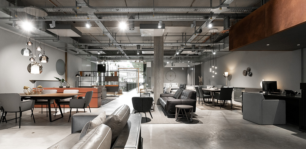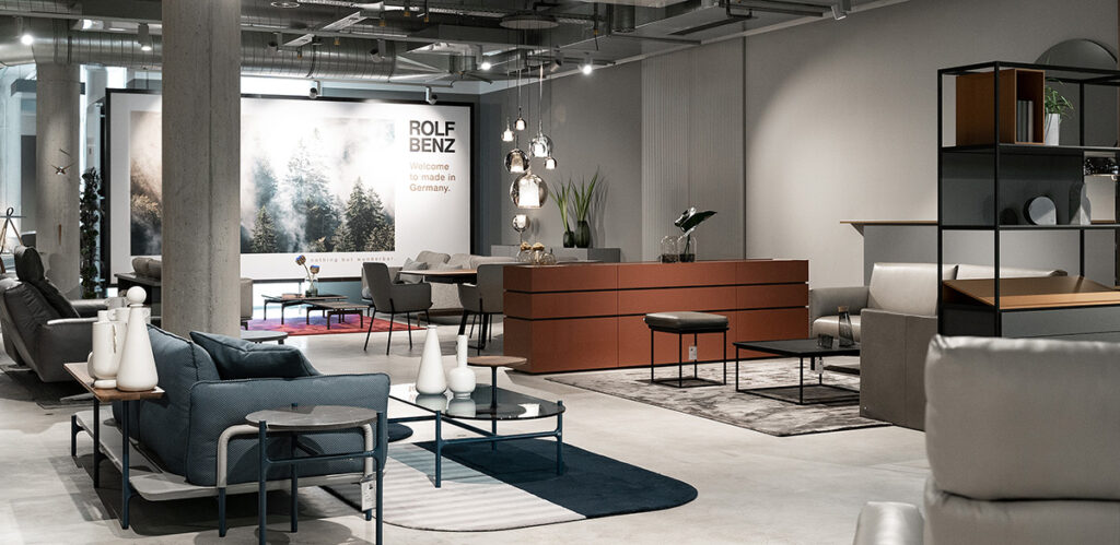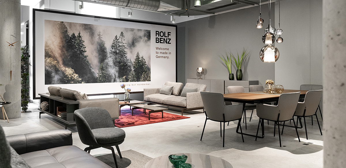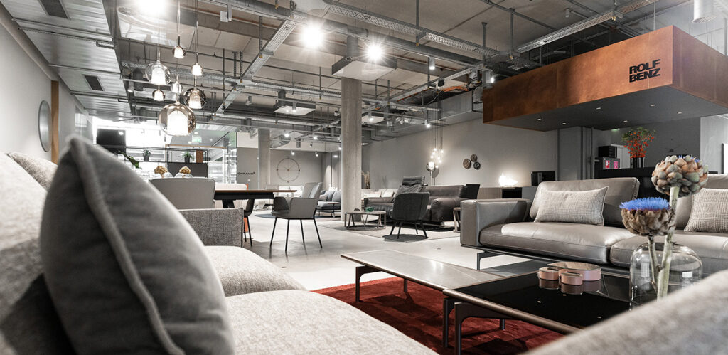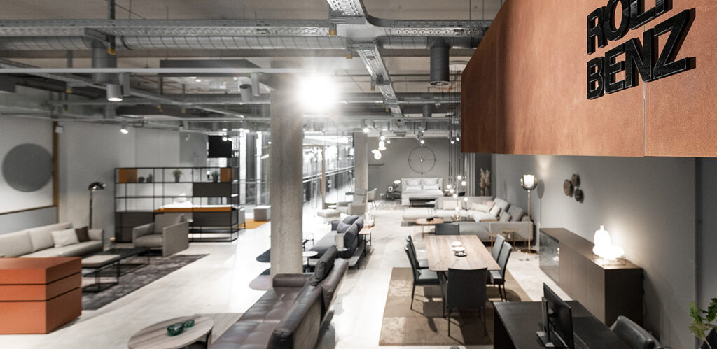 Die Loft-Architektur schafft die perfekte Szenerie für die Polstermöbel, Tische, Stühle und Teppiche der ROLF BENZ-Wohnwelten. Die eingespielten Experten um Alexandros Chomatopoulos realisieren einzelne Räume, Wohnungen und Häuser, aber auch ganze Objekte und freuen sich auf Ihren Besuch.
